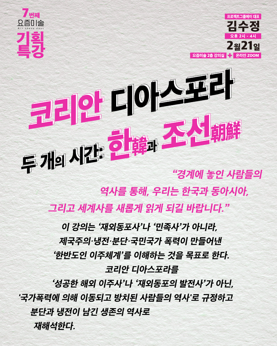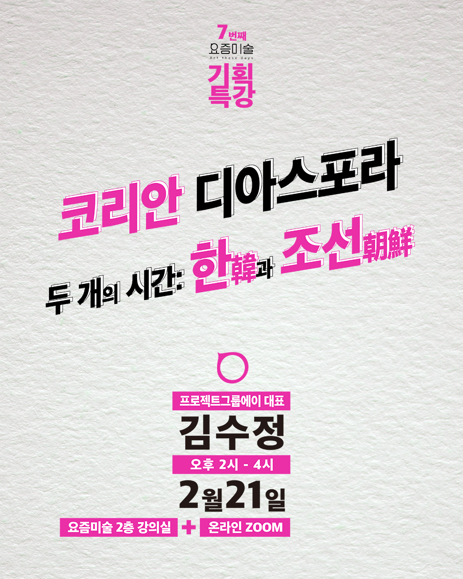 요즘미술 2층 강의실(서울시 종로구 혜화로 9길, 7) 지도보기 , 온라인 ZOOM(링크는 강의 당일 오전에 보내드립니다)