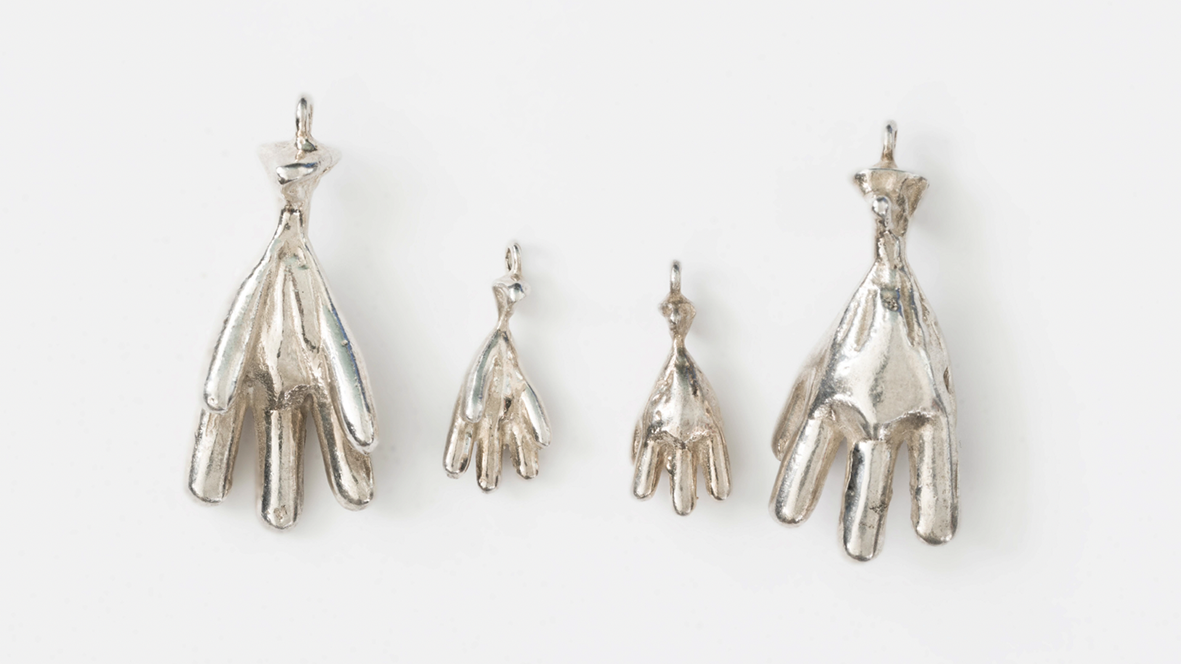 작가가 머물렀던 곳에서 함께한 비닐장갑을 기념하기 위해 제작된 은으로 만든 펜던트.