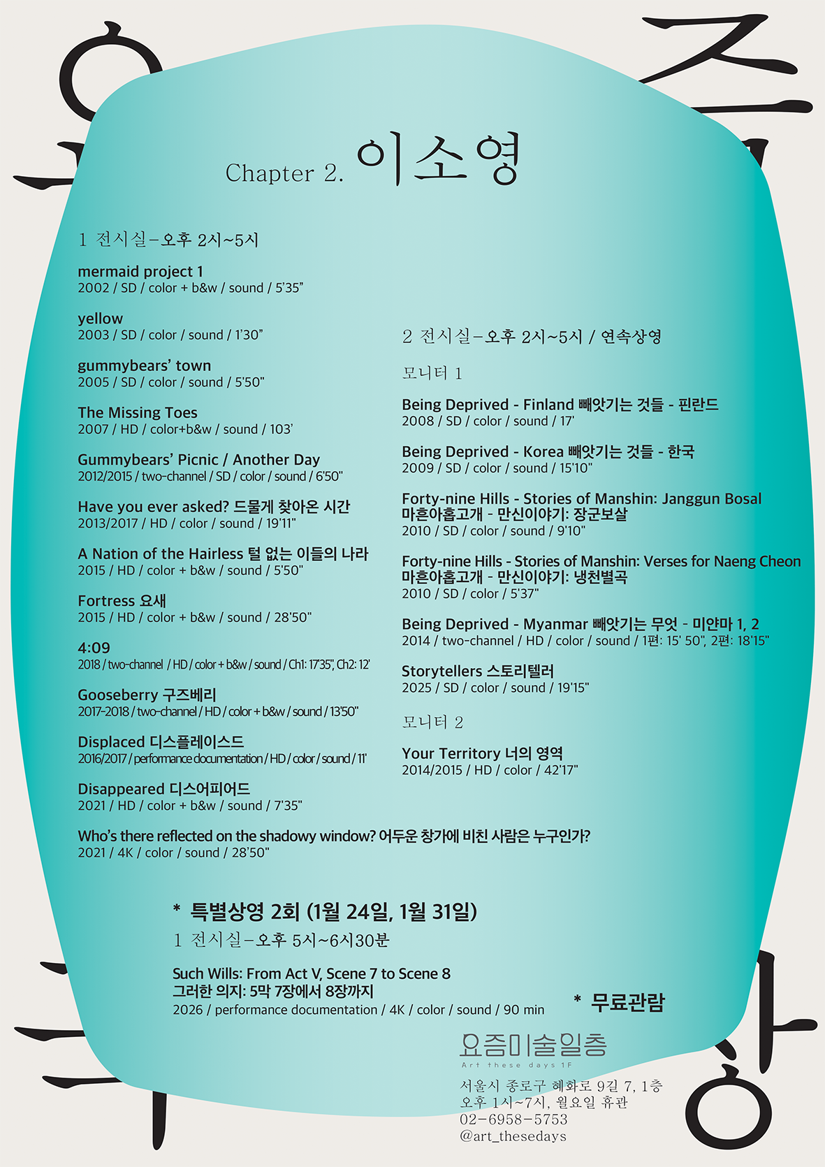 🟢 Dates: 2026 January 24~31, 2~5 pm(monday off)