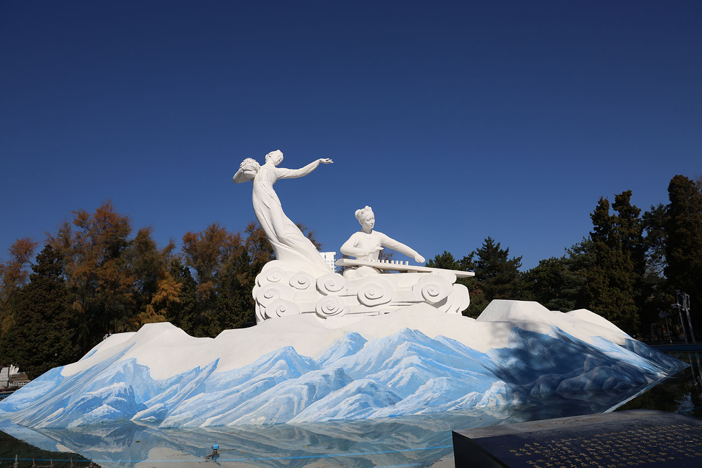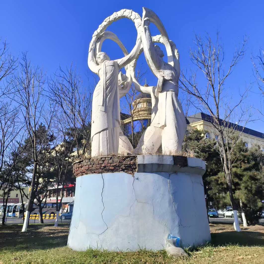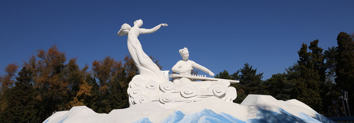 연길(내가 태어나고 자란 도시)에는 두 개의 ‘선녀’ 조각상이 있다. 하나는 연길 기차역 광장에, 하나는 연길 공원에 있다. 이 두 조각상은 나의 기억이 있을 때부터 항상 그 자리에 있었다. 모두 조선족 전통 복장을 한 여성 형상들이다. 어렸을 적 누가 이 조각상들에 대하여 말해준 적은 없었지만, 나는 이 형상이 ‘선녀’라고 생각했었다. 그리고 이 ‘아름다운’ 조각상들은 묵묵히 내 머릿속 깊은 곳에 자리 잡고 있다. 연길은 부르하통하라는 강을 경계로 하남, 하북으로 나뉜다. 조각상 하나는 하북, 하나는 하남에 자리하고 있다. 〈선녀〉작업은 어렸을 적 그렇게 멀게 느껴졌던 이 두 조각상을 빨간 실선으로 이어놓는 행위 작업이다.